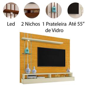 Produzido em mdp de alta qualidade, este painel combina resistência, beleza e funcionalidade. Sua estrutura utiliza peças de 15 mm, além de prateleira superior de 25 mm, prateleira inferior de 30 mm e uma prateleira de vidro que acrescenta elegância ao design. A iluminação led integrada cria um efeito moderno e acolhedor, destacando objetos decorativos e valorizando o ambiente. Com dois nichos e duas prateleiras, o móvel oferece organização prática para eletrônicos, controles e acessórios do dia a dia. O acabamento em pintura uv garante proteção, brilho e maior durabilidade. Por ser suspenso, o painel otimiza o espaço, deixa o ambiente mais clean e acomoda TVs de até 55 polegadas com estilo, eficiência e praticidade.