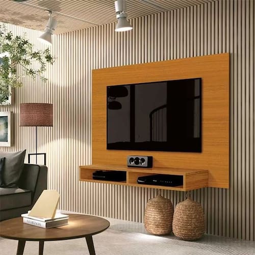 Observações: - Prateleira inferior e nichos; - Ideal para TVs de até 43 polegadas; - Pintura ultravioleta com acabamento fosco. Cor: Cedro