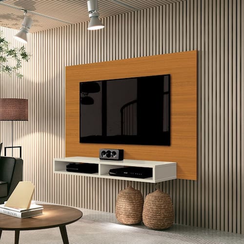O Painel para TV Fox - EDN Móveis é uma ótima opção para o seu ambiente. Lindo e compacto, organiza sua sala de estar, acomodando diversos tipos de itens pessoais e de decoração, além de equipamentos eletrônicos.Dimensões do Produto Montado:Altura: 86 cmLargura: 120 cmProfundidade: 22 cmObservações:- Prateleira inferior e nichos;- Ideal para TVs de até 43 polegadas;- Pintura ultravioleta com acabamento fosco.