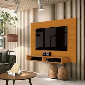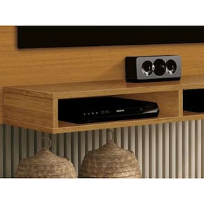 Observações: - Prateleira inferior e nichos; - Ideal para TVs de até 43 polegadas; - Pintura ultravioleta com acabamento fosco. Cor: Cedro