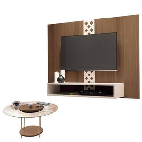 Painel para TV Home Suspenso Form com Mesa de Centro Sky com Tampo de Vidro Castanho Off White – HB Móveis