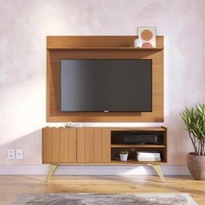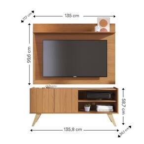 Altura: 58,7 cmLargura: 135,8 cmProfundidade: 36,1 cmPeso: 19,4 kgEstrutura em MDP 15 mm, MDF 15 mm e HDF 3 mmAcabamento em pintura UVFitas de borda em papel2 portas de giro com frisos decorativos2 nichos abertos para eletrônicosPés em madeira maciça estilo retrôSuporta TVs de até 50Benefícios e FuncionalidadesDesign Integrado: Painel e rack combinam perfeitamente, criando um ambiente moderno e organizado.Funcionalidade: Nichos e prateleiras oferecem espaço para eletrônicos, livros e itens decorativos.Estilo Retrô: Pés em madeira maciça e frisos nas portas valorizam o visual do móvel.Durabilidade: Estrutura reforçada em MDP/MDF com acabamento resistente em pintura UV.Ideal para Ambientes Compactos: Dimensões pensadas para otimizar o espaço sem abrir mão do estilo.Observações ImportantesEvite exposição direta ao sol e à umidade para preservar o acabamento.Para limpeza, utilize pano seco ou levemente umedecido.Imagens meramente ilustrativas. Objetos decorativos e eletrônicos não acompanham o produto.As tonalidades podem variar conforme o monitor.Conteúdo da Embalagem1 Painel Maia1 Rack Space1 Manual de instruções
