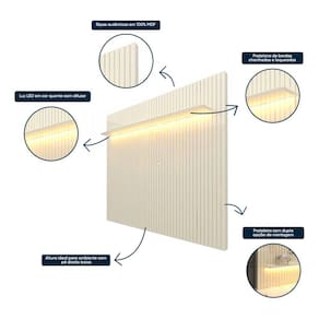 O Painel Nobre Ripado, chega para agregar beleza e elegância ao seu ambiente. Peça funcional e moderna que harmoniza facilmente com diversas decorações, dispondo de uma linda prateleira chanfrada com bordas laqueadas, o complemento possibilita duas opções de montagem, sendo elas na parte superior e inferior do produto. Com LED em luz quente com difusor e ripas autênticas, o Painel Nobre Ripado trará mais exclusividade e vivacidade para sua sala de estar.