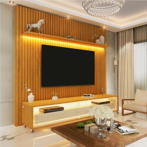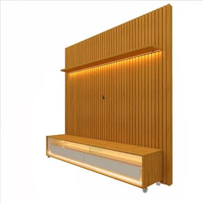 Este conjunto de painel com ripas autênticas é 100% MDF, com um rack elegante com LED de luz em cor quente é a composição perfeita para um ambiente moderno e sofisticado. O painel dispõe de uma prateleira superior com o mesmo LED do rack, com rodízios e divisórias de vidro. O rack requinte possui duas gavetas espaçosas com corrediça telescópicas na cor Off White que completam a beleza deste conjunto. Produto Montado: Sim Acabamento: Pintura UV Acabamento da Gaveta: Pintura UV Acabamento da Prateleira: Pintura UV Acabamento dos Pés: Pintura Acompanha Lâmpada: Não Acompanha Manual de Instalação: Sim Altura do Conjunto: 250 cm Altura do Painel: 250 cm Altura do Rack: 45 cm Ambiente Principal: Sala de Estar codigo_ean: 7909903248706 Complexidade da Montagem: Média: pode ser montado por mais de uma pessoa e/ou necessite de maior conhecimento para montagem Cor: Marromle Cor do Produto: Marromle Cor Flex: Não Cor Interna: Marromle Escala de Brilho: Semi-Fosco Escala de Brilho da Gaveta: Semi-Fosco Escala de Brilho da Prateleira: Semi-Fosco Espessura do Painel: 24,6 cm Espessura do Vidro: 8 mm Gaveta com Chave: Não Ideal para TVs até (Polegadas): 75 Informações Complementares: Iluminação por fita LED. Itens Inclusos: 01 unidade do produto + 01 manual de montagem Largura do Painel: 184 cm Largura do Rack: 172,5 cm Linha ou Coleção: Nobre Manual de Especificação Técnica: https://product-hub-prd.madeiramadeira.com.br/826070/documents/7b6c52ac-4688-401f-9af1-066c4fe39664equinteripado185pnlkrkkrod.pdf Manual de Montagem e Instalação: https://product-hub-prd.madeiramadeira.com.br/826070/documents/6078d79e-6061-4739-94f9-468f4b0aea60equinteripado185pnlkrkkrod.pdf Material da Gaveta: MDF/MDP Material da Prateleira: MDP Material dos Pés: Madeira Maciça Material Principal: MDF Montagem Flex: Não Necessita Montagem: Sim Origem do Produto: Nacional Peso do Painel: 78 kg Peso do Rack: 41 kg Peso Máximo por Gaveta: 5 kg Peso Máximo por Prateleira: 6 kg Possui Espelho: Não Possui iluminação: Sim Possui Portas: Não Possui Prateleiras: Sim Possui Tomada: Não Possui Vidro: Sim Profundidade do Painel: 24.6000 Profundidade do Rack: 34,8 cm Quantidade de Gavetas: 02 Gavetas Recomendações de Uso, Manutenção e Limpeza: A limpeza do produto deve ser feita por meio do uso de um pano, umedecido com água, e um pano seco. É importante para fazer a limpeza do móvel nunca utilizar produtos químicos ou abrasivos. Para conservar o padrão de qualidade dos produtos Gelius, nunca arraste um móvel se este estiver cheio. Nunca puxe o móvel de frente para você, pois ele pode balançar e provocar acidentes. Sapatas Niveladoras: Não Sistema de Montagem: Convencional: parafusos, pregos, cavilhas, etc. Suporte de TV Universal Incluso: Não Tipo de Corrediça da Gaveta: Metálica Telescópica Tipo de Dobradiça/Corrediça da Porta: Metálica Tipo de Puxador da Gaveta: Embutido Ean: 7909903248706