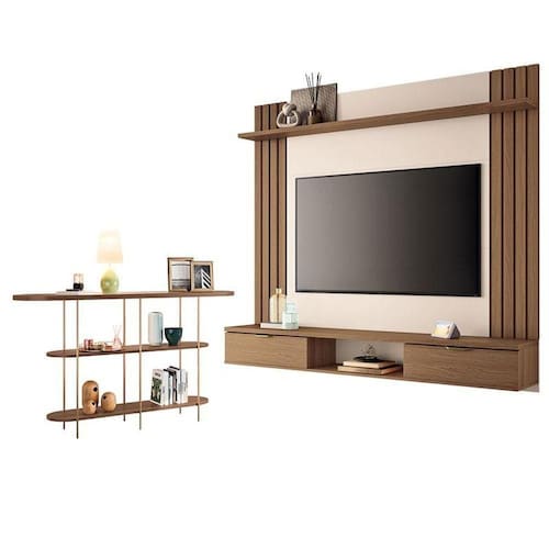 Painel para TV Home Suspenso Solus Castanho Off White HB Móveis
