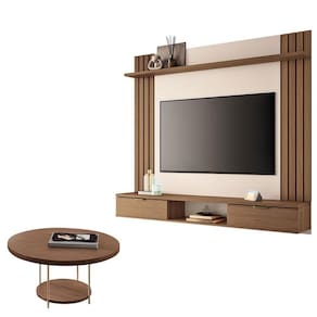 Painel para TV Suspenso Solus e Mesa de Centro SKY Castanho Off White – HB Móveis