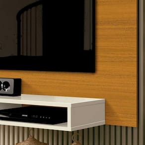 Nichos funcionais: para organização de eletrônicos e objetos decorativos.