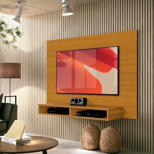 Nichos funcionais: para organização de eletrônicos e objetos decorativos.