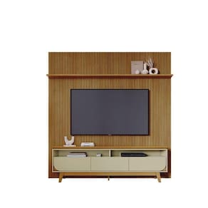 Painel Piso Teto New Guaporé com Rack Bancada Selene New Luna Cumaru Opala - Madetec
