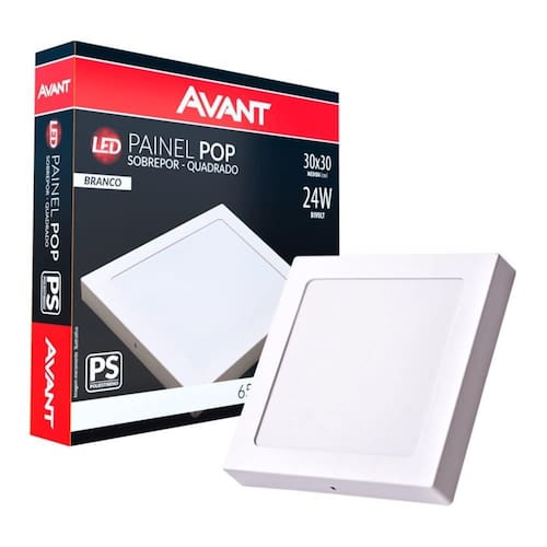 Características Adicionais: Plafon LED quadrado de sobrepor com design moderno Iluminação homogênea para ambientes residenciais, comerciais e corporativos Potência de 24W Eficiência luminosa de 70 lm/W Fluxo luminoso constante Instalação por sobrepor e uso interno Vida Útil de 25.000 hrs