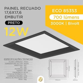 Painel Plafon Embutir Quadrado Recuado Led 12W Bivolt Opus