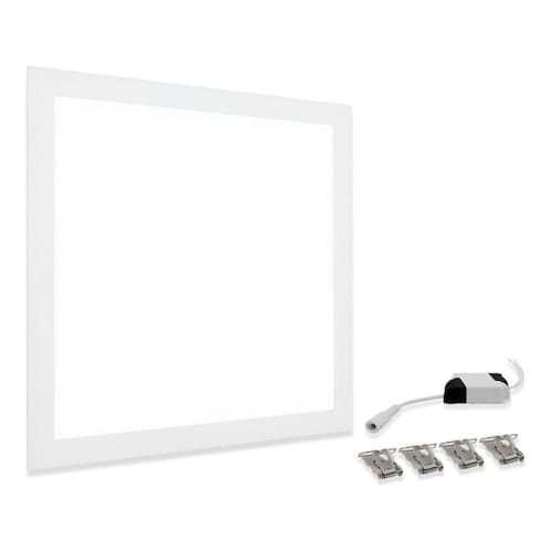 - Potência: 45W - Modelo: Quadrado embutir - Material: Metal e policarbonato - Temperatura de cor: Branco Frio 6500K - Lúmens: 4000lm - Voltagem: AC100-240V Bivolt - Frequência: 50/60 Hz - Ângulo de visão: 120 - Temperatura de operação: -20ºC a 50ºC - Dimensões: Altura: 62cm Largura: 62cm Profundidade: 3,0cm - Eficiência luminosa: 89lm/W - IRC 80 - Fator de potência 0,9 - Vida útil estimada L70 em 25.000h - IP 20