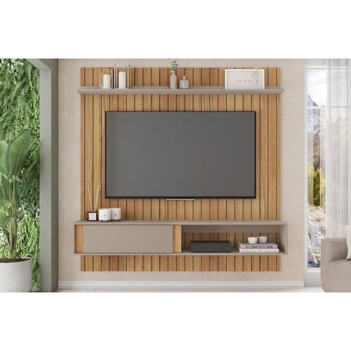 Painel Home p/ TV até 65 Pol Boreal Ripada 180x183cm Buriti/Cacao - Caemmun