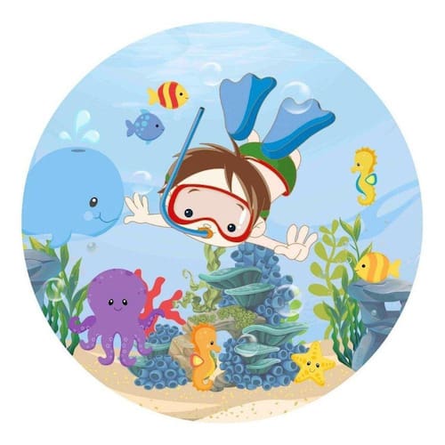 Painel Redondo Tecido Sublimado 3D Fundo Do Mar Frd-5867
