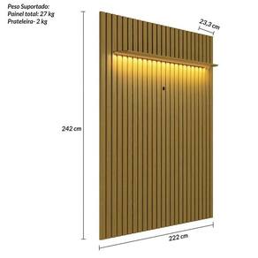 O Painel Ripado London 222 cm é um produto com um design no estilo ripado. A sua estrutura é em MDF e MDP de 15 e 25 mm, possui uma prateleira superior de 25mm onde apresenta um led com luz quente deixando Painel iluminado e um passa fio para TV.