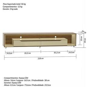 1x Rack para Tv até 70 Polegadas com Led e Rodízios 220cm Loop Móveis Cedro Freijó /Off White / Bege Largura: 218 cm Altura: 44 cm Peso: 43 kg Profundidade: 39 cm Necessita Montagem: Sim