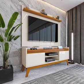 Ambiente Principal: Sala de Estar | Largura: 136,5 cm | Complexidade da Montagem: Média | Pessoas necessárias para montagem: 1 | Altura: 108 cm | Profundidade: 36 cm | Suporta até: 30 kg | Possui iluminação Não | Peso 50 kg | Origem do produto Nacional | Necessita montagem: Sim | Possui portas: Não Possui Portas | Possui gavetas: Não Possui Gavetas | Quantidade de caixas de embalagem: 2 | Possui prateleiras?: Sim | Possui nichos?: Sim | Possui espelhos?: Não Possui Espelhos | Possui vidro?: Não Possui Vidro | Modelo Monaco; Rack; Estante TV; Sala de Estar; Quarto; Royal; Painel | Marca: ViaNossa; ViaNossa Móveis; EDN Móveis; Monaco; Royal | Material: MDP e MDF | Formato do móvel: Rack com Painel | Acabamento Pintura UV | Tempo de garantia: 3 meses | Tipo de garantia: Fabricante | Inclui manual de montagem: Sim Off White e Cedro