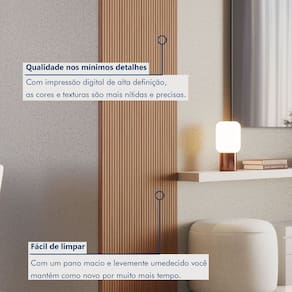 Os Painéis Ripados Decorativos Ecorevest são fabricados 100% em MDF, com revestimento externo em filme de polímero de fácil limpeza e impressão digital de alta definição, garantindo fidelidade e um acabamento impecável. Com design contemporâneo, eles agregam beleza e sofisticação a qualquer ambiente, seja sala, escritório ou área de lazer.