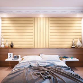 Modernos e versáteis, os painéis ripados linha Splendore ruffino são ideais para decorar paredes, tetos e moveis.