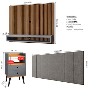 Além do painel, temos a cabeceira Luana, confeccionada através de um modelo modular e com a estrutura suspensa, permitindo o ajuste da altura e dando o conforto necessário.