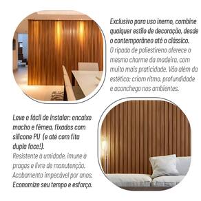 Com uma variedade de acabamentos e núcleos, nossos ripados se adaptam perfeitamente a qualquer estilo de decoração, desde o contemporâneo até o clássico. Leves e de fácil aplicação , nossos ripados garantem uma instalação rápida (encaixe macho e fêmea - fixados com silicone PU) e sem complicações, economizando seu tempo e esforço. Feitos de poliestireno de alta qualidade , são resistentes ao desgaste, à umidade e facilidade de limpeza , mantendo a beleza e integridade do seu ambiente por muito mais tempo.