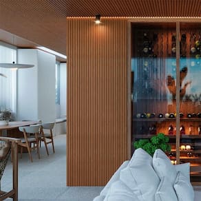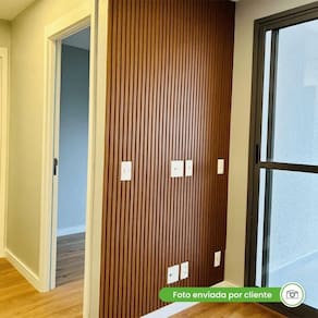 Características Adicionais do Produto: Ripado laminados Produto leve Infinitas possibilidades de paginações Possibilidade de fixar em superfícies curvas Pode ser aplicado no teto (sem precisar de uma estrutura específica) Os Ripados Laminados trazem a liberdade de uso do EVA com o acabamento fino da laminação São ideais para quartos, salas e ambientes corporativos que primam pela elegância e sofisticação