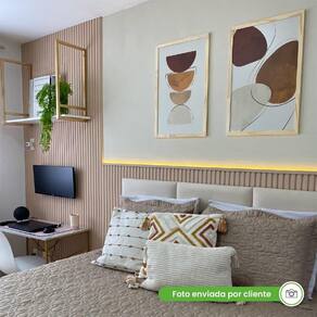 Características Adicionais do Produto: Ripado laminados Produto leve Infinitas possibilidades de paginações Possibilidade de fixar em superfícies curvas Pode ser aplicado no teto (sem precisar de uma estrutura específica) Os Ripados Laminados trazem a liberdade de uso do EVA com o acabamento fino da laminação São ideais para quartos, salas e ambientes corporativos que primam pela elegância e sofisticação