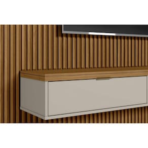 O painel Ripado Modular da Linea Brasil vem para criar uma nova forma de decorar seu ambiente. Esse conjunto de Painel Ripado modular possui uma prateleira em MDP para objetos decorativos, nicho para aparelhos eletrônicos e duas portas basculantes com pistão a gás. Seu design clean deixará sua sala ainda mais moderna. Acabamento: Finish Foil Acabamento da Porta: Pintura UV Acabamento da Prateleira: Pintura UV Ambiente Principal: Sala de Estar Complexidade da Montagem: Média: pode ser montado por mais de uma pessoa e/ou necessite de maior conhecimento para montagem Cor: Marrom/Off White Cor do Produto: Marrom/Off White Escala de Brilho: Fosco Escala de Brilho da Porta: Fosco Escala de Brilho da Prateleira: Fosco Ideal para TVs até (Polegadas): 75 Itens Inclusos: 1 Conjunto Ripado Modular 1 Manual de Montagem 1 Kit de Ferragem. Manual de Montagem e Instalação: https://cdn2.madeiramadeira.com.br/atributo/linea-brasil/1279743-conjunto-ripado-modular-2-6.pdf Material da Porta: MDP Material da Prateleira: MDP Material Principal: MDF/MDP Necessita Montagem: Sim Origem do Produto: Nacional Peso: 113,7 kg Peso Máximo por Prateleira: 3 kg Possui Espelho: Não Possui iluminação: Não Possui Pés: Não Possui Portas: 02 Possui Prateleiras: 01 Possui Tomada: Não Recomendações de Uso, Manutenção e Limpeza: Realizar a limpeza com um pano levemente umedecido em água. Sistema de Montagem: Cavilhas, Parafusos, Minifix Suporte de TV Universal Incluso: Não Tipo de Dobradiça/Corrediça da Porta: Metálica Tipo de Puxador da Porta: Externo