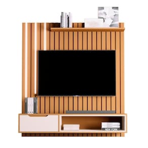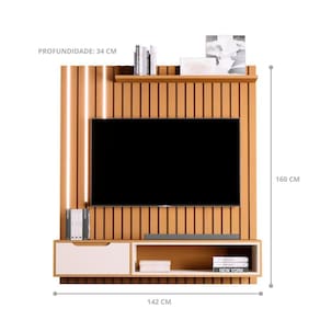 Acompanha 2 painéis ripado, 1 gaveta e 1 nicho.