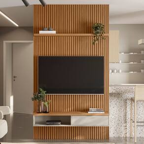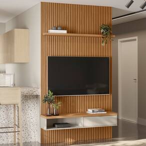 O painel ripado é uma tendência de decoração que pode transformar completamente qualquer ambiente. Melhor ainda quando combinado com uma bancada suspensa e prateleira para adicionar muito mais funcionalidade, assim como o Painel Ripado Para TV 60 Pol Slats e Bancada Lisa 141x250cm L05 Nature Off White, da Lyam Decor.