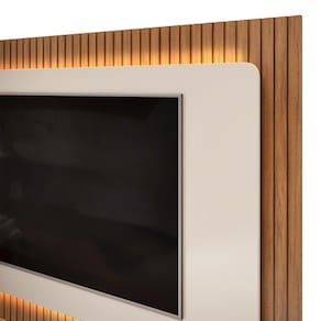Com um design contemporâneo esse painel para tv conta com linhas curvas, cantos arredondados e, ainda, um painel ripado na parte posterior, sendo um elemento atemporal e que agrega ainda mais beleza. Já as fitas de LED emolduram o painel central que suporta receber aparelhos de TV de até 70 polegadas. Para completar a funcionalidade desse painel para sala, as portas basculantes otimizam o espaço de armazenamento e, assim, mantém o ambiente organizado e lindo, enquanto a bancada suspensa serve de apoio para itens decorativos para deixar tudo como você sempre quis.