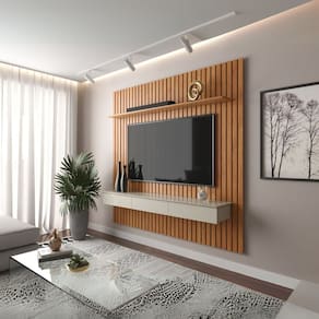 Transforme sua sala de estar em um ambiente elegante e sofisticado com o Painel Ripado Home Antares, ideal para TVs de até 55 polegadas. Com design contemporâneo e acabamento impecável, este móvel é perfeito para quem busca beleza, praticidade e funcionalidade em um só produto. Produzido em MDF de alta qualidade, o painel Antares possui estrutura ripada que valoriza o ambiente e traz um toque de modernidade. Seu nicho superior com prateleira oferece espaço para decoração, aparelhos eletrônicos e objetos de destaque, enquanto as 3 gavetas amplas proporcionam praticidade no dia a dia, ajudando a manter tudo organizado. O modelo conta com fixação na parede, otimizando o espaço e conferindo leveza ao ambiente, além de deixar a instalação da TV mais segura e alinhada ao design do móvel. O acabamento pode ser encontrado em combinações de cores como Cinamomo e Off White, que harmonizam facilmente com diversos estilos de decoração, desde os mais clássicos até os modernos.
