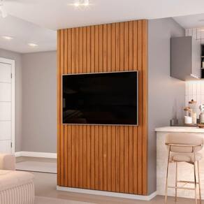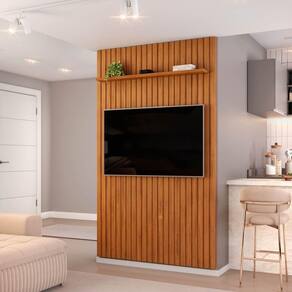 O Painel Ripado Trento é um produto ível e elegante que pode ser o destaque de diferentes ambientes no seu lar. Disponível em 5 larguras e 2 alturas diferentes, ao escolher qual se adequa mais no seu ambiente você garante um encaixe perfeito. Toda sua extensão é composta de peças ripadas de MDF de 15mm, que são chapas de madeira reconstituída advindas de reflorestamento, matéria prima que não prejudica o ambiente e garante durabilidade e resistência ao seu produto. Além disso o Painel Ripado Trento conta com uma ampla prateleira de 25mm de espessura e com borda chanfrada, onde você pode manter objetos decorativos em posição de destaque. Este produto comporta TVs de até 60, enquanto a resistência do Painel é de até 40Kg, lembrando disso você consegue comprar a TV ideal para usar em conjunto com este móvel, garantindo o melhor do entretenimento para sua família. Não se preocupe com os cabos, este produto possui passa-fios para facilitar a organização dos cabos por trás do produto. O Painel Ripado Trento é um produto cheio de benefícios, perfeito para dar aquele toque especial na sua casa, aproveite e torne seu lar mais aconchegante com este lindo produto.