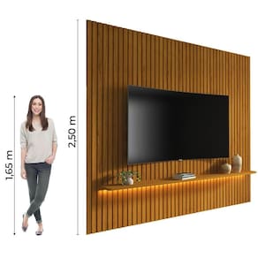 Certifique-se de tudo antes de finalizar a compra, evitando assim futuros desagrados ou imprevistos com a . MEDIDAS:: A = 250 cm L = 184 cm P = 24,6 cm | MEDIDAS DA PRATELEIRA:: L = 145 cm P = 20 cm | PESO SUPORTADO:: 55 kg | PESO:: 78 kg | PRATELEIRA SUPORTA ATÉ:: 5 kg | IDEAL PARA TV DE ATÉ:: 70 Polegadas | MODELO:: Painel Ripado Para TV Até 70 Polegadas Com Prateleira e LED Nobre | MARCA:: Gelius | COR:: Naturale | PINTURA:: UV | MATERIAL:: MDF | ESPESSURA DO MATERIAL DA ESTRUTURA:: 15mm | PRATELEIRAS:: 1 | DIFERENCIAL:: Iluminação em LED, Ripado autêntico, Prateleira com borda chanfrada e laqueada | ITENS INCLUSOS:: 1 Painel, 1 Manual de montagem, 1 Kit Parafusos | INSTRUÇÕES/CUIDADOS:: Para maior durabilidade, recomendável que a limpeza dos móveis seja feita com pano limpo e levemente umedecido em água e sabão neutro. Em seguida, deverá ser passado um pano limpo e seco. | GARANTIA:: 3 meses pelo fabricante | AVISO:: A Esplanada Móveis se responsabiliza pela dos produtos adquiridos até a porta de entrada ou portaria do endereço indicado, se a portaria do condomínio permitir, as s são efetuadas no piso térreo e é de responsabilidade do cliente. Cor: Naturale