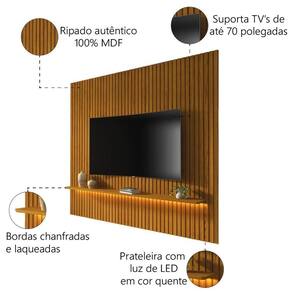 Painel Ripado Para Tv Até 70 Polegadas Com Prateleira E Led Nobre Naturale Gelius Naturale