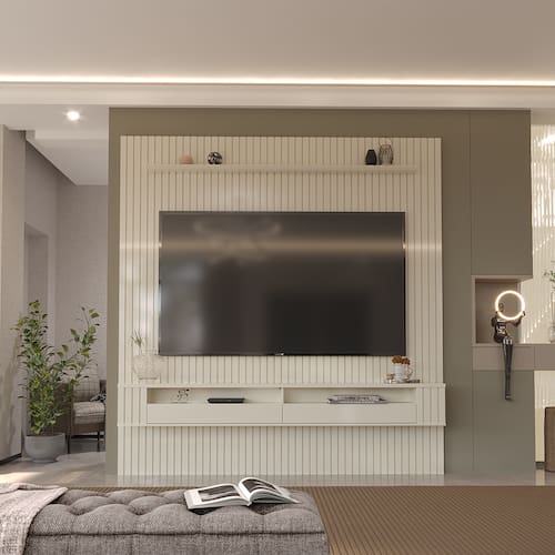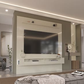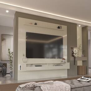 Painel Ripado para TV Até 75 Polegadas Intense com Nicho 225cm - Off White