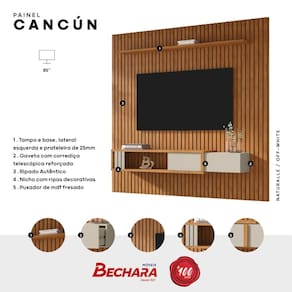 Decore sua sala com charme e modernidade utilizando o Painel Cancun. Com espaço para TV de até 85 polegadas ele possui espaço para seus objetos de decoração e aparelhos eletrônicos. Com um design moderno, ele proporciona um ambiente ideal para curtir seus filmes e programas de TV.