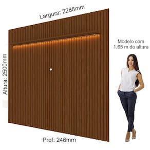 O Painel Nobre Ripado Gelius, chega para agregar beleza e elegância ao seu ambiente. Peça funcional e moderna que harmoniza facilmente com diversas decorações, dispondo de uma linda prateleira chanfrada com bordas laqueadas, o complemento possibilita duas opções de montagem, sendo elas na parte superior e inferior do produto. Com led em luz quente com difusor e ripas autênticas, o Painel Nobre Ripado trará mais exclusividade e vivacidade para sua sala de estar. Acabamento: Pintura UV Acabamento da Prateleira: Pintura UV Ambiente Principal: Sala de Estar Complexidade da Montagem: Média: pode ser montado por mais de uma pessoa e/ou necessite de maior conhecimento para montagem Cor: Castanho Cor do Produto: Castanho Cor Flex: Não Cor Interna: Castanho Escala de Brilho: Semi-Fosco Escala de Brilho da Prateleira: Semi-Fosco Ideal para TVs até (Polegadas): 75 Informações Complementares: Iluminação por fita LED. Itens Inclusos: 1 Painel, Kit Ferragens e Manual de Montagem Linha ou Coleção: Requinte Manual de Montagem e Instalação: https://product-hub-prd.madeiramadeira.com.br/901790/documents/cde7e308-2e26-458a-9079-00aa857f5fdb319941115109nobre230painel.pdf Material da Prateleira: MDF Material Principal: MDF Montagem Flex: Não Necessita Montagem: Sim Origem do Produto: Nacional Peso: 98 kg Peso Máximo por Prateleira: 5 kg Possui Espelho: Não Possui Portas: Não Possui Prateleiras: Sim Possui Vidro: Não Quantidade de Nichos: Não Recomendações de Uso, Manutenção e Limpeza: A limpeza do produto deve ser feita por meio do uso de um pano, umedecido com água, e um pano seco. É importante para fazer a limpeza do móvel nunca utilizar produtos químicos ou abrasivos. Para conservar o padrão de qualidade dos produtos Gelius, nunca arraste um móvel se este estiver cheio. Nunca puxe o móvel de frente para você, pois ele pode balançar e provocar acidentes. Sistema de Montagem: Convencional: parafusos, pregos, cavilhas, etc. Suporte de TV Universal Incluso: Não