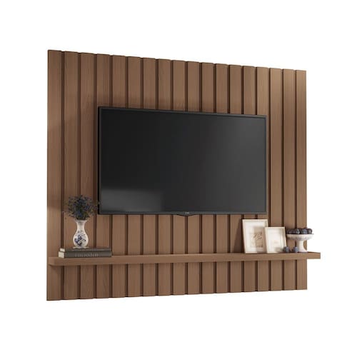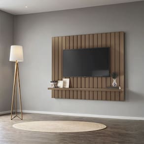 Disponível em Cinamomo e Castanho, combina facilmente com diferentes estilos de decoração. Ideal para quem busca um painel elegante e prático para TVs de até 60", suportando até 40kg distribuídos.