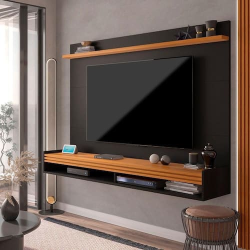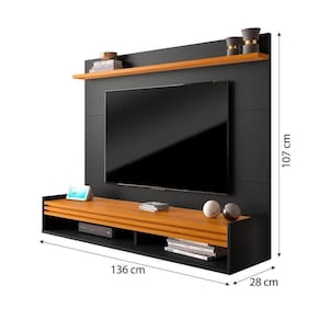 Ambiente Principal: Sala de Estar | Largura: 136 cm | Complexidade da Montagem: Média | Pessoas necessárias para montagem: 1 | Altura: 107 cm | Profundidade: 29 cm | Suporta até: 30 kg | Possui iluminação Não | Medida máxima para TV: 55 polegadas | Origem do produto Nacional | Necessita montagem: Sim | Possui portas: Não Possui Portas | Possui gavetas: Não Possui Gavetas | Quantidade de caixas de embalagem: 1 | Possui prateleiras?: Possui 2 prateleira | Possui nichos?: Possui 2 nichos | Possui espelhos?: Não Possui Espelhos | Possui vidro?: Não Possui Vidro | Modelo Ipanema; Estante; Painel; Sala de Estar; Quarto; Royal; | Marca: ViaNossa; ViaNossa Móveis; EDN Móveis; Ipanema; Royal | Material: MDP e MDF | Formato do móvel: Painel | Acabamento Pintura UV | Tempo de garantia: 3 meses | Tipo de garantia: Fabricante | Inclui manual de montagem: Sim Preto e Cedro