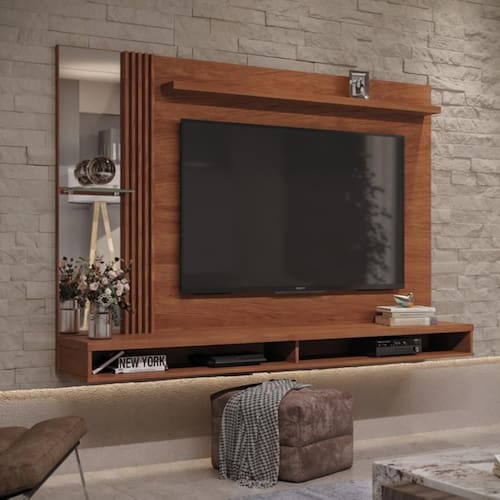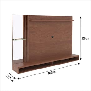 Ambiente Principal: Sala de Estar | Largura: 160 cm | Complexidade da Montagem: Média | Pessoas necessárias para montagem: 1 | Altura: 108 cm | Profundidade: 27,5 cm | Suporta até: 30 kg | Possui iluminação Não | Medida máxima para TV: 55 polegadas | Origem do produto Nacional | Necessita montagem: Sim | Possui portas: Não Possui Portas | Possui gavetas: Não Possui Gavetas | Quantidade de caixas de embalagem: 1 | Possui prateleiras?: Possui 2 prateleiras | Possui nichos?: Possui 2 nichos | Possui espelhos?: Possui 2 espelhos | Possui vidro?: Possui 1 prateleira de vidro | Modelo Sarabi; Estante; Painel; Sala de Estar; Quarto; Royal; | Marca: ViaNossa; ViaNossa Móveis; EDN Móveis; Sarabi; Royal | Material: MDP e MDF | Formato do móvel: Painel | Acabamento Pintura UV | Tempo de garantia: 3 meses | Tipo de garantia: Fabricante | Inclui manual de montagem: Sim Naturale