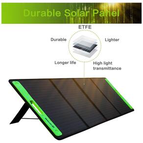 Durável O painel solar é totalmente laminado, feito por tecnologia laminada avançada e material de ETFE de longa duração, feito para uso de longo prazo por mais de 15 anos. NOTA Antes de testar a tensão da porta de 14,4 V, é necessário conectar uma carga e bateria para ativar