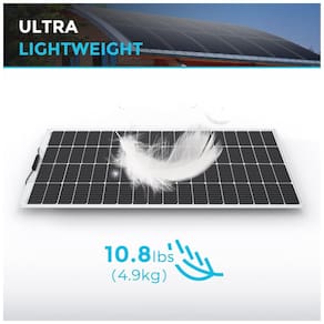 O Painel Solar Monocristalino Flexível Renogy 200W é uma excelente opção para quem busca alta potência de saída. Com capacidade média de fornecer 1000 Watt horas de eletricidade por dia, calculado com 5 horas de luz solar, é um produto eficiente e econômico. Além disso, é fácil de transportar e instalar, adaptando se à maioria das superfícies curvas, pois é dobrável em 240 graus. Com peso de apenas 12 do painel rígido e aparência totalmente preta e sem brilho, é discreto e elegante. Equipado com tecnologia de célula PERC halfcut, que melhora a captura de luz solar e o desempenho elétrico, este painel solar apresenta tecnologia líder da indústria. É confiável e durável, funcionando com caixa de junção à prova d água com classificação IP67 e conectores solares, suportando até 5.400 Pa de carga de neve pesada e até 2.400 Pa de vento forte. Pronto para instalação, o painel vem com furos de montagem pré perfurados e cabos conectores solares longos de 12 AWG 27,6 pol., possibilitando instalação rápida e fácil.