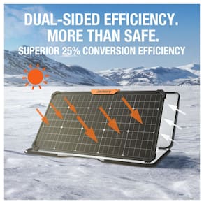 Painéis de dupla face Eficiência solar aprimorada o painel solar atualizado pode gerar eletricidade de ambos os lados. O vidro extrabranco taxa de transmissão de 92 no painel traseiro ajuda a aumentar a taxa de conversão. Uma bolsa de transporte com forro refletivo é especialmente projetada para refletir a energia solar extra. Resistência à água e poeira certificação IP68 à prova dágua e à prova de poeira contra condições climáticas adversas. Um cabo de extensão de dois metros é fornecido para aplicação de distância de carregamento extra, flexível o suficiente para uso externo. Ampla compatibilidade os s painéis solares de 80 W são totalmente compatíveis com todas as estações de energia Jackery, oferecendo opções de carregamento de seleção de primeira classe, com até 12 unidades de painéis solares de 80 W carregados simultaneamente. Carregue da maneira que quiser. Montagem extremamente durável e fácil feito de vidro temperado de baixo teor de ferro de 2,, proporcionando uma durabilidade imensamente alta ao painel solar, com um design de canto exclusivo que aumenta a resistência. Fornecendo configurações simples e rápidas em apenas um minuto.