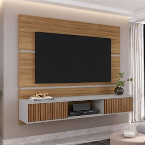 Estrutura: MDP, tampo com 25 mm de espessura; colunas e barras traseiras, laterais, divisórias e portas dos nichos de MDP de 15 mm; painel e base de MDP 12 mmAcabamento: Pintura U.V,Porta: Sim, 02 portas basculantes sem puxador e com dobradiças metálicas.Instalação: Sistema prático de instalação por encaixe entre as barras de MDP na parte traseira do painel e na parede e com fixação reforçada por parafusos extrasSuporta TV: Ideal para TV de até 65 polegadas com peso de ate 20 KilosEspaço da TV: Espaço livre de 104,8 cm x 160 cm para instalação da TV de até 65Dimensões do produto montado