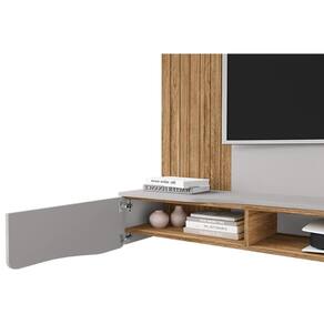 Com um design sofisticado, ele acomoda sua TV de tela plana com segurança, enquanto o painel adiciona um toque de calor e estilo ao ambiente.