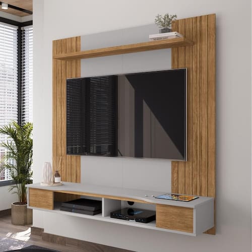 Transforme sua sala de estar com o Painel Suspenso Ipanema, um móvel que une praticidade, resistência e um design elegante que valoriza qualquer ambiente. Desenvolvido para comportar TVs de até 55 polegadas e suportar até 50 kg, ele é a escolha ideal para quem busca organização sem abrir mão do estilo.
