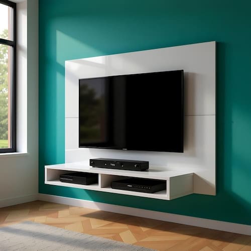 Nichos funcionais: para organização de eletrônicos e objetos decorativos.