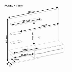 O Painel nt 1115 da Notável Móveis possui detalhes que irão valorizar ainda mais seu ambiente! Prateleiras de vidro 8mm e luz de Led são alguns dos diferenciais que proporcionam um design impecável ao produto. E para agregar ainda mais valor ao móvel, a porta possui um belíssimo puxador curvado em alumínio e também um pistão a gás, que permite uma abertura mais suave da porta.