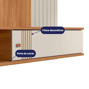 Características adicionais: Prateleira de 25mm, nicho com porta em detalhes frisados e abertura de correr, design com ripado usinado.